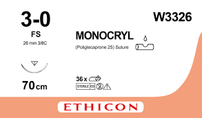Nici Monocryl - 3/0 - 3/8 koła - igła odwrotnie tnąca 26mm - 70cm bezbarwna - op. 12