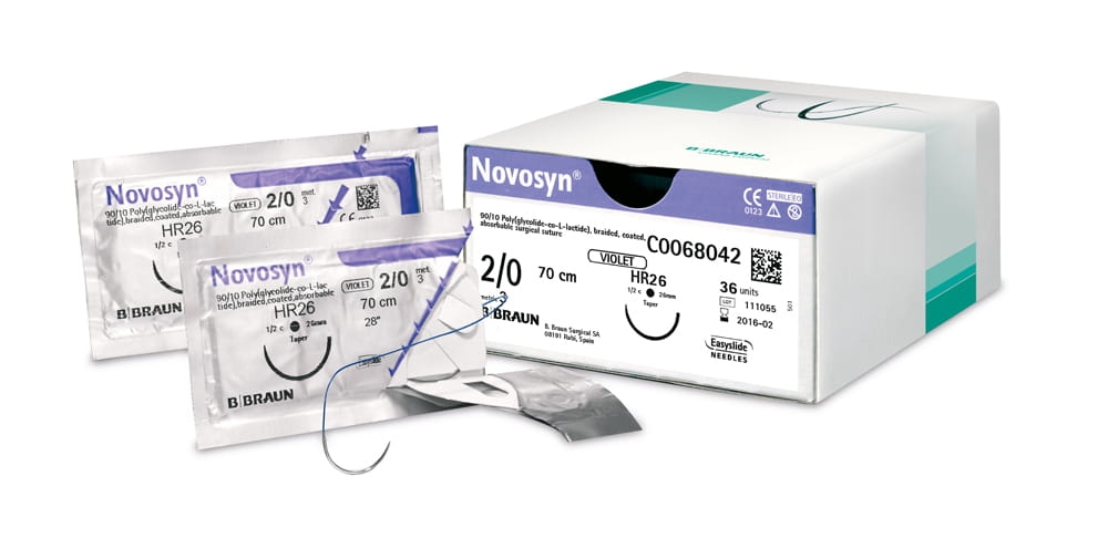 Novosyn jest syntetycznym, wchłanialnym szwem plecionym wykonanym z kopolimeru 90% glikolidu i 10% L-laktydu. Szew jest powlekany kopolimerem glikolidu i l-laktydu (50%), Poli (glikolid i L-laktyd 35/65) oraz stearynianem wapnia (50%). Idealny szew do zespoleń tkanek miękkich i do podwiązywania we wszystkich procedurach chirurgicznych, gdzie wymagany jest szew syntetyczny, wchłanialny, pleciony o średnim okresie podtrzymywania tkanki.