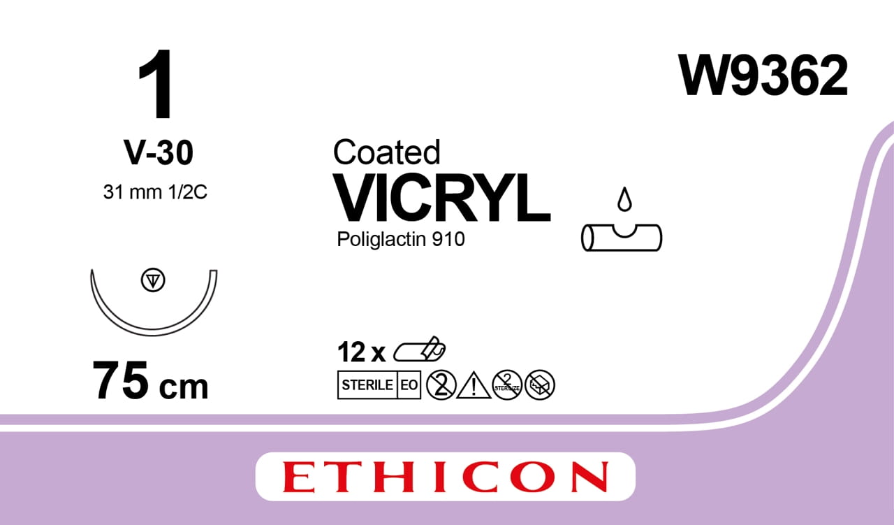Powlekany szew syntetyczny, wchłanialny, pleciony i monofilamentowy. Poliglaktyna 910 (polimer kwasu glikolowego i mlekowego, połączonych w proporcjach 9:1) pokryta mieszaniną Poliglaktyny 370 i stearynianu wapnia (w proporcjach 1:1). Efektywny okres podtrzymywania tkankowego do 35 dni. Szwy VICRYL są przeznaczone do zbliżania i/lub podwiązywania tkanek miękkich, w tym w chirurgii oka, do zespalania nerwów obwodowych oraz mikrochirurgii naczyń krwionośnych o średnicy mniejszej niż 2 mm. Nie ustalono, czy stosowanie szwów VICRYL w tkankach sercowo-naczyniowych jest bezpieczne i skuteczne.
