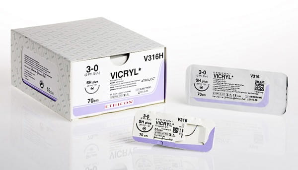 Powlekany szew syntetyczny, wchłanialny, pleciony i monofilamentowy. Poliglaktyna 910 (polimer kwasu glikolowego i mlekowego, połączonych w proporcjach 9:1) pokryta mieszaniną Poliglaktyny 370 i stearynianu wapnia (w proporcjach 1:1). Efektywny okres podtrzymywania tkankowego do 35 dni. Szwy VICRYL są przeznaczone do zbliżania i/lub podwiązywania tkanek miękkich, w tym w chirurgii oka, do zespalania nerwów obwodowych oraz mikrochirurgii naczyń krwionośnych o średnicy mniejszej niż 2 mm. Nie ustalono, czy stosowanie szwów VICRYL w tkankach sercowo-naczyniowych jest bezpieczne i skuteczne.