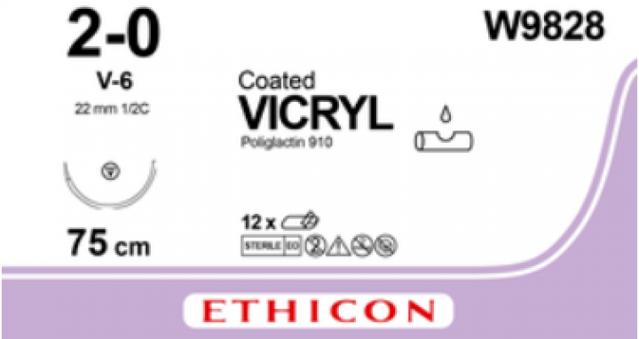 Powlekany szew syntetyczny, wchłanialny, pleciony i monofilamentowy. Poliglaktyna 910 (polimer kwasu glikolowego i mlekowego, połączonych w proporcjach 9:1) pokryta mieszaniną Poliglaktyny 370 i stearynianu wapnia (w proporcjach 1:1). Efektywny okres podtrzymywania tkankowego do 35 dni. Szwy VICRYL są przeznaczone do zbliżania i/lub podwiązywania tkanek miękkich, w tym w chirurgii oka, do zespalania nerwów obwodowych oraz mikrochirurgii naczyń krwionośnych o średnicy mniejszej niż 2 mm. Nie ustalono, czy stosowanie szwów VICRYL w tkankach sercowo-naczyniowych jest bezpieczne i skuteczne.