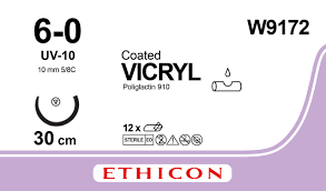 Powlekany szew syntetyczny, wchłanialny, pleciony i monofilamentowy. Poliglaktyna 910 (polimer kwasu glikolowego i mlekowego, połączonych w proporcjach 9:1) pokryta mieszaniną Poliglaktyny 370 i stearynianu wapnia (w proporcjach 1:1). Efektywny okres podtrzymywania tkankowego do 35 dni. Szwy VICRYL są przeznaczone do zbliżania i/lub podwiązywania tkanek miękkich, w tym w chirurgii oka, do zespalania nerwów obwodowych oraz mikrochirurgii naczyń krwionośnych o średnicy mniejszej niż 2 mm. Nie ustalono, czy stosowanie szwów VICRYL w tkankach sercowo-naczyniowych jest bezpieczne i skuteczne.