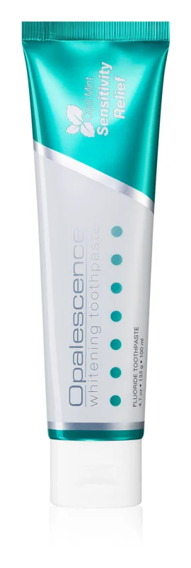 Zmagasz się z nadwrażliwością, ale jednocześnie chcesz rozjaśnić swój uśmiech? Ta pasta jest idealna dla Ciebie! Opalescence Sensitivity Relief to jedyna pasta, której potrzebujesz, aby utrzymać zdrowy i piękny uśmiech przy nadwrażliwych zębach. Zawiera azotan potasu, który skutecznie eliminuje ból. Jej wyjątkowa formuła zapewnia efektywne rozjaśnianie uśmiechu, jednocześnie wzmacniając szkliwo, zapobiegając próchnicy i dbając o zdrowie jamy ustnej. Jest wystarczająco łagodna do codziennego użytku, a jej wyjątkowy, miętowy smak Cool Mint uzależnia! Pasta Opalescence Whitening Toothpaste jest również polecana przez dentystów po profesjonalnym zabiegu wybielania zębów.