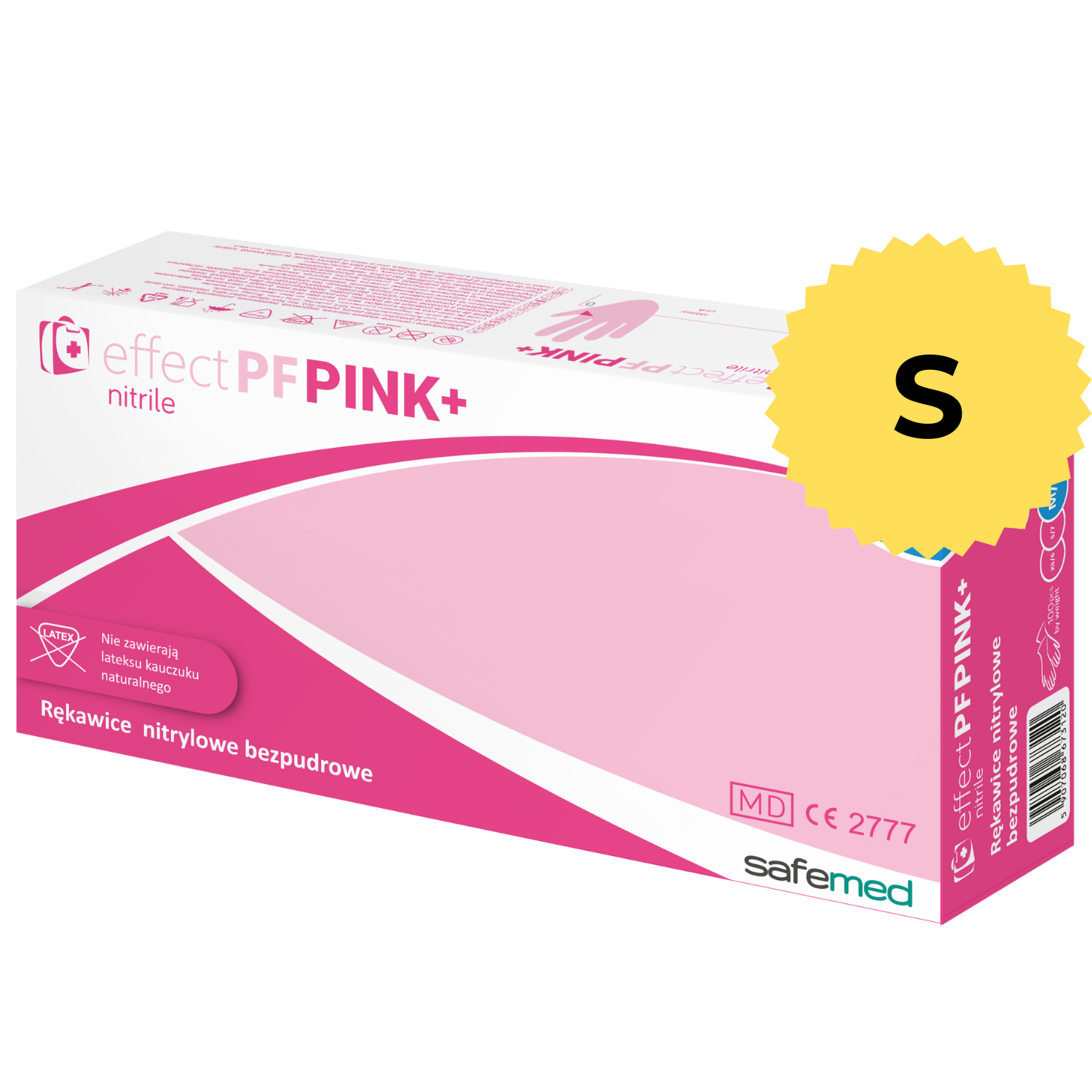 Rękawice nitrylowe różowe bezpudrowe Effect Pink+, S – 100 sztuk