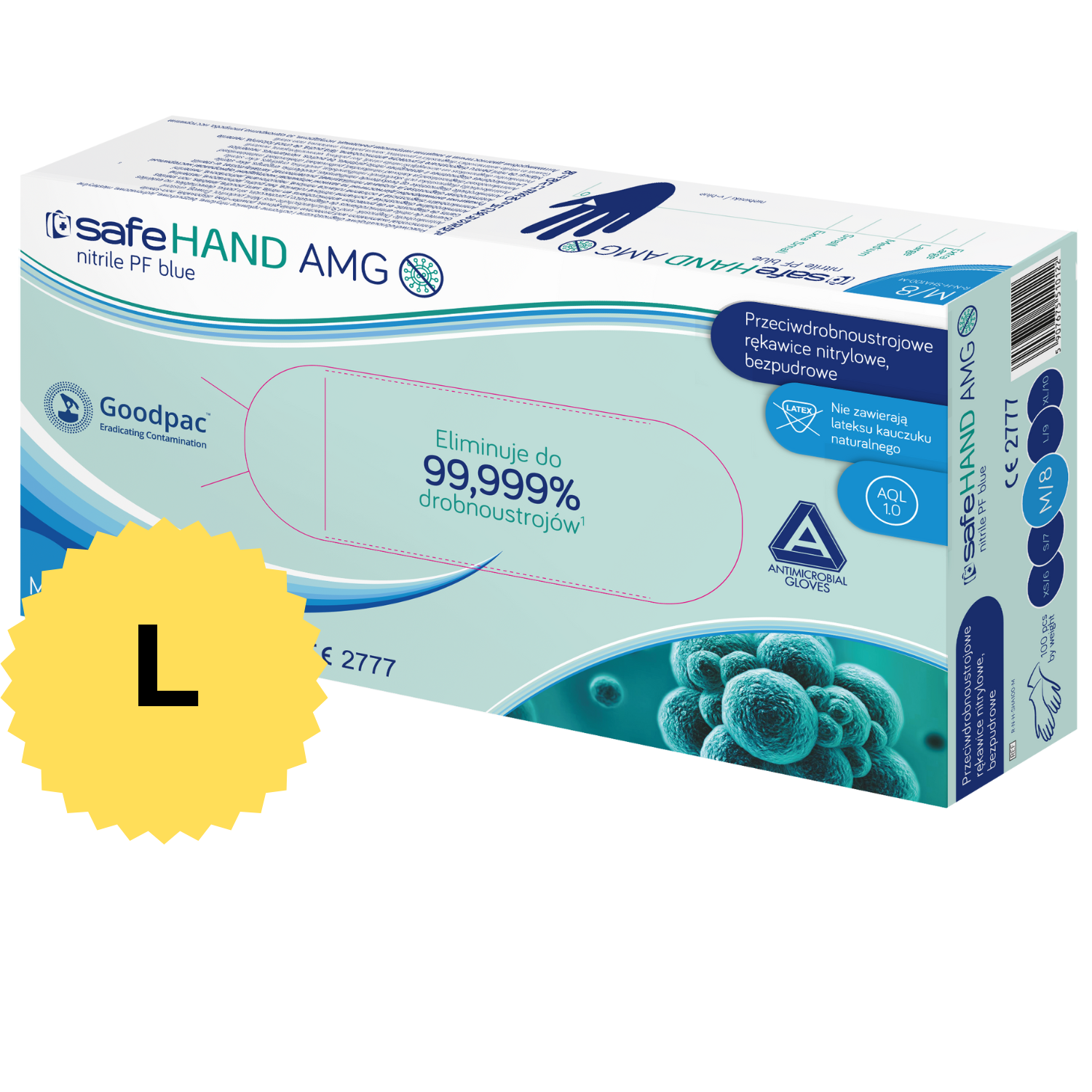 Rękawice nitrylowe przeciwdrobnoustrojowe SafeHAND AMG, L – a'100 sztuk