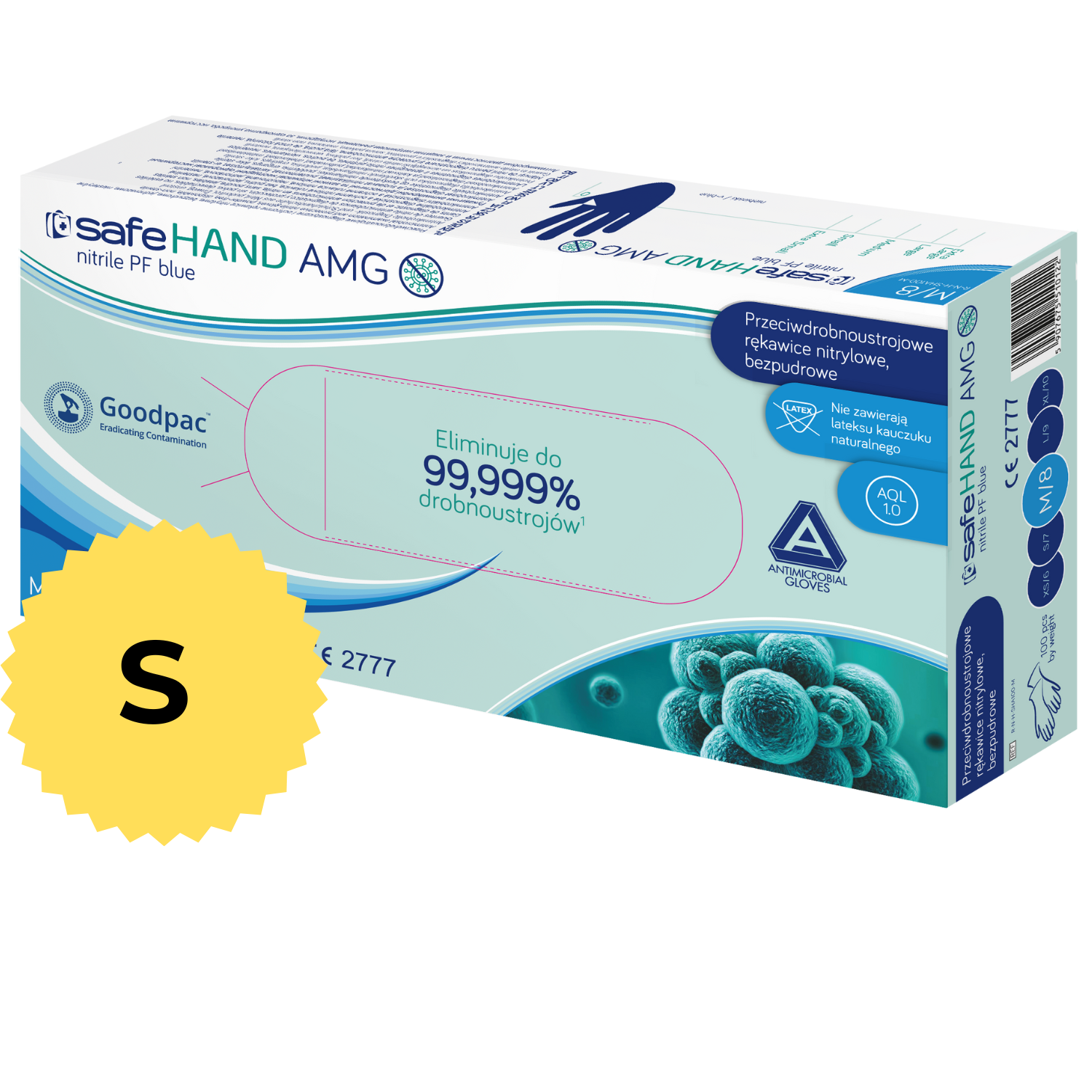 Rękawice nitrylowe przeciwdrobnoustrojowe, safeHAND AMG, S - a'100 sztuk